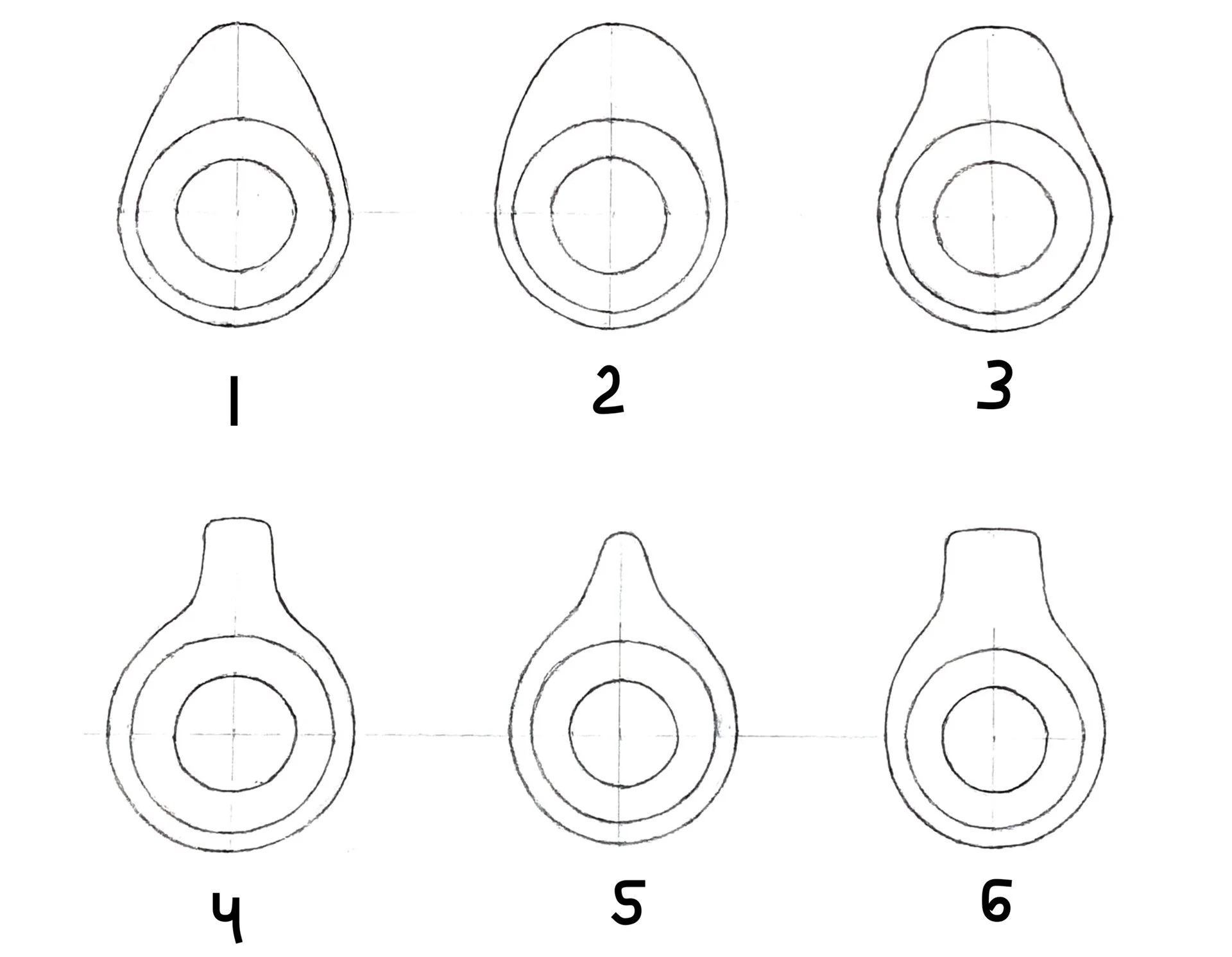 The results of the survey revealed that rounded shapes were favored over rectangular ones in aesthetic appeal. The single strap design was favored over the double strap due to its perceived security. Overall, design 2 in figure A was the top choice. Next iterations of design 2 were produced in figure B, from which design 2 was selected and modeled in Fusion360.