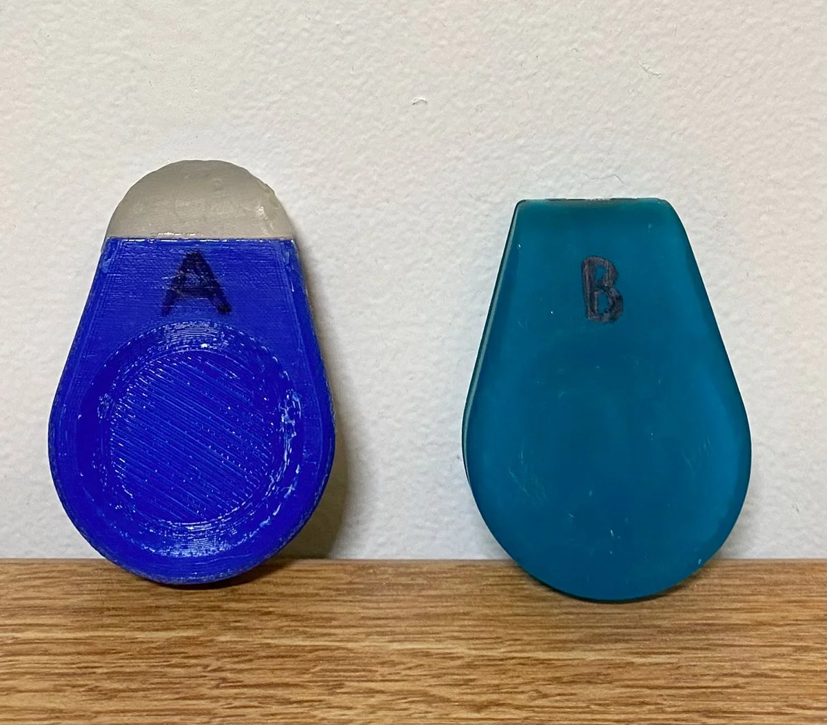 Two prototypes were prepared for the mechanical design part of the test, shown above. Prototype A had a magnet clip and a flexible hinge while prototype B had a spring hinge. The test consisted of three surveys—A setup, B setup, and the post-run questionnaire. Each participant had a time limit of two days to run with each prototype and complete the surveys.